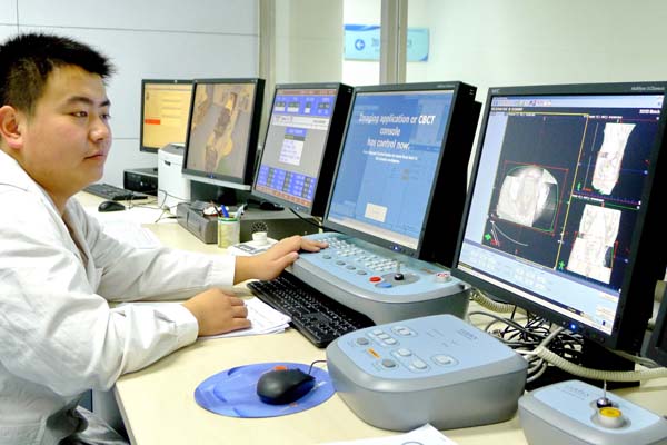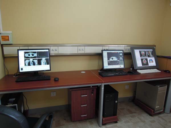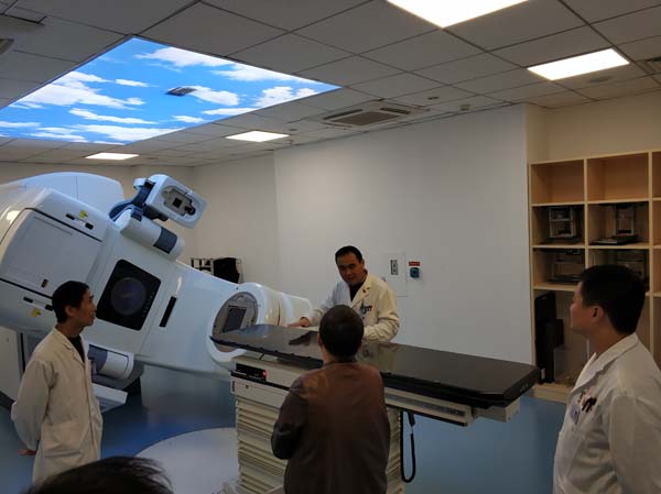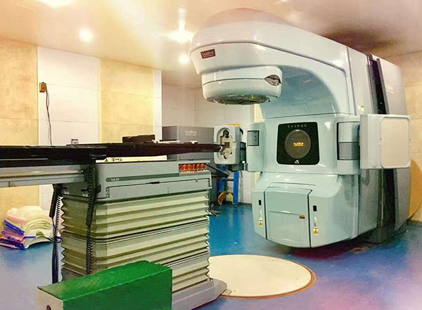 放射治疗科曾经为我国的国产放疗加速器研发做出杰出贡献。前北京医疗器械研究所研制的多台填补国内空白的医用直线加速器都是在我们科室装机、验收和认证完成的。目前的放疗科装备高端、拥有两台直线加速器和一台放疗专用大孔径CT。两台直线加速器都配备CBCT实时CT图像引导系统,可以实施快速精准放疗。大孔径定位CT可以图像完成四维重建,为更好地开展调强放射治疗提供定位保证。物理治疗计划室拥有多套治疗计划系统可制作放疗计划, 物理水箱系统,剂量验证系统,晨检仪确保每天治疗机输出剂量的准确。科室的放疗信息化管理系统,保证科室整体放疗工作有条不紊。