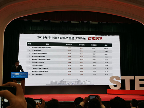 北京胸科医院连续五年蝉联“中国医院科技量值排行榜”结核病学榜首