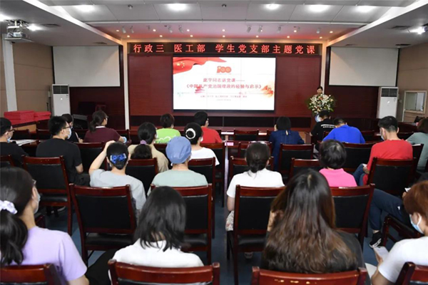 7月16日,北京胸科医院党委副书记、纪委书记庞宇同志结合学习贯彻习近平总书记在庆祝中国共产党成立100周年大会上的讲话精神,以“中国共产党治国理政的经验与启示”为题讲授了一堂党史学习教育专题党课。医工部党支部、行政三党支部、学生党支部的党员和全体共青团干部等70余人参加,党课由行政三党支部书记李云同志主持。