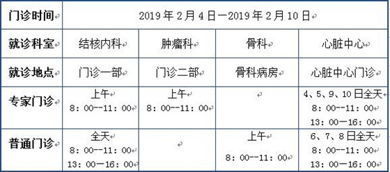 2019年春节假期(2019.2.4-2019.2.10)期间具体出诊情况如下: