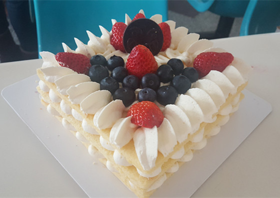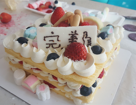 按照老师教授的技巧和步骤,学员们结合各自的想法,用新鲜水果、棉花糖、饼干等材料丰富和装饰蛋糕。