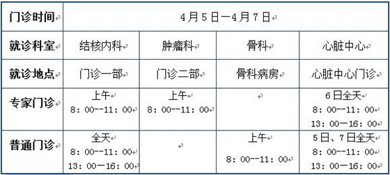2019年清明节假期(2019.4.5-2019.4.7)期间具体出诊情况如下: