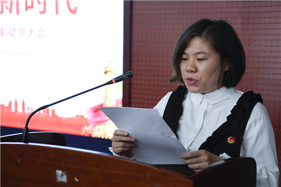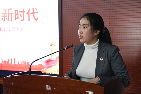 团委组织委员崔飞带领团员青年重温入团誓词,面向团旗庄严宣誓,相应时代的召唤。