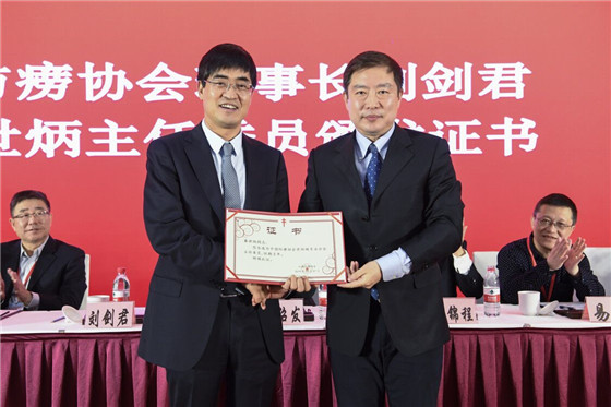 秦世炳教授首先介绍了出席会议的领导、专家以及分会成立的背景。中国防痨协会理事长刘剑君发表致辞,他首先代表中国防痨协会对一直以来帮助和支持防痨协会发展的专家、各界朋友表示感谢,同时对他们的辛勤付出给予肯定。刘剑君理事长指出,中国防痨协会成立60余年来成绩显著,这离不开专业分会专家们的辛勤付出,也离不开社会人士的共同支持。当前,全国结核病发病人数虽然逐年下降,但我们面临的形势依然严峻。这需要我们结核人继续发扬肯吃苦、善钻研的精神,一代一代的为中国结核病防治工作不懈努力。他说,骨结核专业分会的成立不仅完善了中国防痨协会在结核病防治领域的版图,同时也将集中全国骨结核专业的力量,为中国骨结核的防治贡献力量。刘剑君希望所有成员能够分享经验,一起帮助骨结核专业分会尽快发展起来,要开展骨结核领域基线调查,出台结核病诊疗团体标准等,助推中国防痨事业再上新台阶。