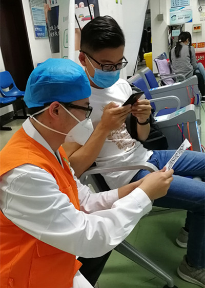 在接下来的调查活动中,志愿者们耐心细致、态度亲和,为每一位参与调查的患者及家属讲解此次活动的意义,为上了年纪的患者阅读题目,协助他们完成问卷,通过志愿者的指导,让更多的患者从不了解到主动参与此次在线调查。
