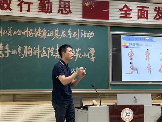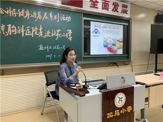 7月11日下午,北京胸科医院与通州区总工会携手开展的“科学健身进基层健康大讲堂系列活动”走进通州区北苑小学,将应季营养、中医保健知识送到教职员工身边,让他们在辛勤工作之余,更加关注身体健康,以更加饱满的热情投入到祖国的教育事业中去。