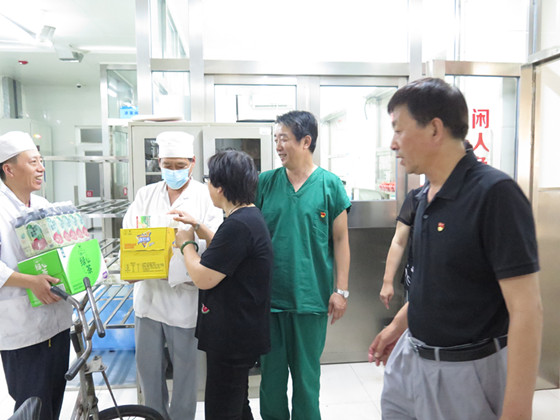 7月16日上午,党委副书记李艳红、工会主席王丽娟、工会副主席王才跃以及院长助理赵泽钢、分会主席张志强等同志,先后到锅炉房、水暖组、维修组等7个高温岗进行了慰问,对在高温环境下依然坚守在工作岗位的职工们表达了亲切的问候,并将酸梅汤等防暑降温饮料送到他们手中。夏送清凉,关爱相伴,每到一个高温岗位,职工接到院领导送来的慰问物品时都纷纷表示感谢,并保证一定会克服酷暑高温,坚守岗位,尽职尽责,完成好各项保障工作,确保医院在高温酷暑天气下有序运行。