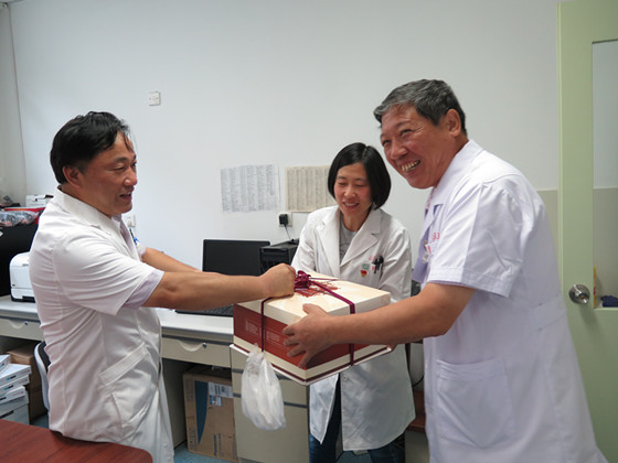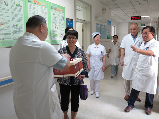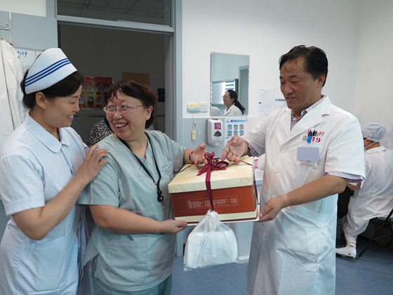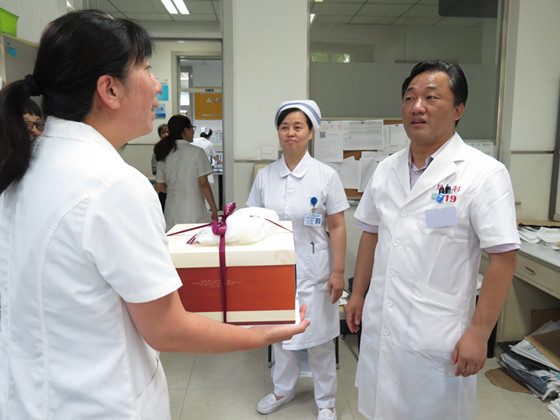 主任王秀华,一同为各病区医生同仁,送去节日的祝福和蛋糕。
