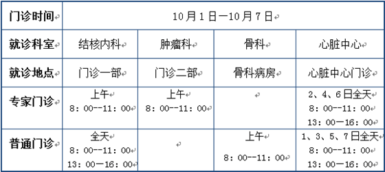 2019年国庆节假期(2019.10.1-2019.10.7)期间具体出诊情况如下: