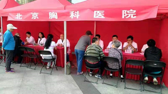 北京胸科医院医务处组织院内心脏中心、结核内科、骨科、胸外科、肿瘤内科等科室专家和护理人员,一大早就来到通州万达广场。看到有市属的专科医院专家,百姓们主动上前咨询。近年来体检中发现肺结节的情况增多,查出肺结节后应该怎么办,百姓没有个准主意。这次义诊,肿瘤内科、胸外科前,咨询此类问题的人较多,专家也是具体情况具体分析,有些过度紧张和焦虑的百姓,专家给吃了颗定心丸。