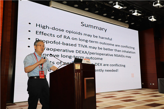 北京大学第一医院麻醉科王东信主任讲授“围术期管理与肿瘤预后”。