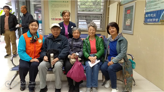 体检当日,老同志们早早来到保健室,领取体检表,测量血压及体重、查验血常规及生化,同时完成胸部CT、甲状腺及腹部B超、心电图等检查项目。各科室工作人员都为老同志的到来提前做好准备,热情耐心地服务使整个体检过程和谐而有序。因近期医院院区改造,检查科室位置有所变化,离退办特别安排“老党员先锋队”15名老年志愿者为老同志引导路线、维持秩序、扶助行动不便的老人, 2名青年志愿者和离退办工作人员全程陪伴离休干部到每个检查科室,帮助按压采血点、整理衣物、搀扶协助躺下坐起,耐心细心的陪护着老人们。
