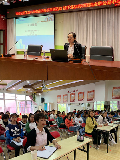 送健康到基层系列活动,与以往健康教育不同之处在于,所有课程都是由职工们自己选择的最需要的健康科普内容,通州区总工会具体协调,医院根据职工的需要精心准备科普课程,为职工送去最需要的健康科普知识。