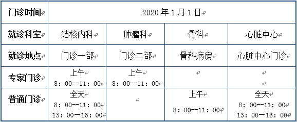 2020年元旦假期(2020.01.01)期间具体出诊情况如下: