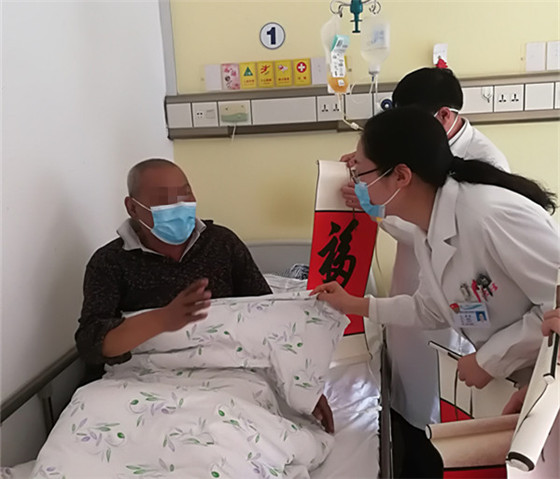 收到这份特殊的“礼物”,每一位患者都开心不已,甚至留下感动的泪水。有的患者激动地说:“我入院时病情很重,是你们让我缓了过来,今天又给我送来了祝福,我发自真心的感谢你们。”有的患者笑着说:“我一定听从大夫的诊疗安排,好好配合治疗,争取早日康复出院。”有的患者翘起大拇指说:“你们平时工作本来就很辛苦,没想到为了我们还这么贴心,用心,感谢你们。”