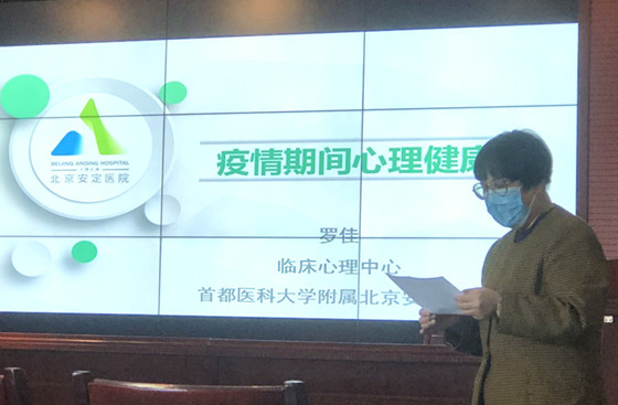 4月23日下午,医院工会请来了中国心理学会注册心理师、北京市心理健康科普专家讲师、首都医科大学附属北京安定医院临床心理中心精神科罗佳副主任医师为医院职工进行“疫情期间心理健康”讲座。