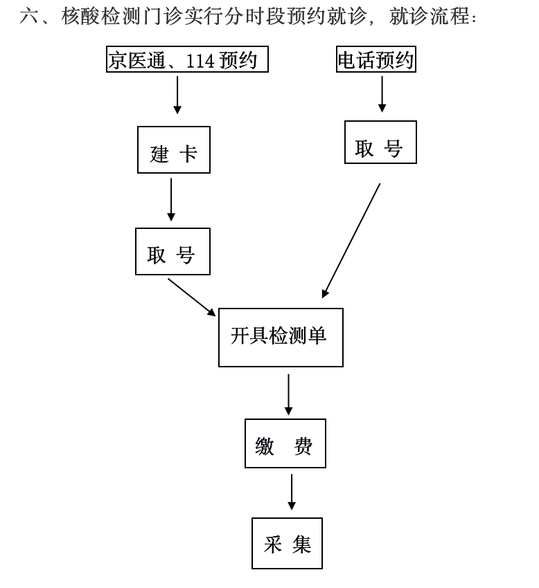 六、核酸检测门诊实行分时段预约就诊,就诊流程: