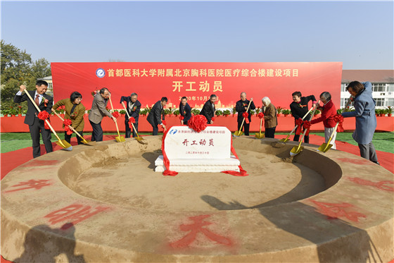 随着彩花飞舞,礼炮齐鸣,北京胸科医院党委书记潘军华宣布:北京胸科医院医疗综合楼建设项目正式开工。