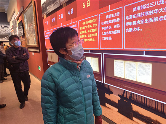 大家认真聆听讲解,仔细观看展出资料和历史图片,深刻感受伟大抗美援朝精神的丰富内涵和时代价值,真切体会中国人民不畏强暴的钢铁意志、万众一心的顽强品格、维护世界和平的坚定决心和人民军队敢打必胜的血性铁骨。