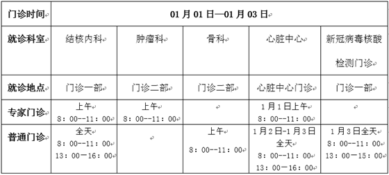 北京胸科医院2021年“元旦”假期期间出诊信息