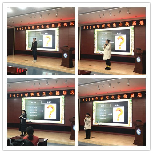 在大家的期待中,第八届研究生会的换届选举工作正式开始。由第七届研究生会副主席白哲昕同学主持,2020级所院研究生新生报名踊跃,积极参与,现场气氛热烈。利用微信小程序投票功能,经过几番激烈的角逐后,最后产生了第八届研究生会成员。白哲昕同学为研究生会主席,徐子唯同学为副主席,刘海婷同学为文体部部长,李思琦同学为文体部副部长,林婷婷同学为学习部部长,李潇萌同学为学习部副部长,彭涛同学为宣传部部长,田娜同学为宣传部副部长。