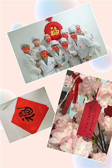 春节是家家户户团圆的日子,患者由于疫情或者病情的影响不能回家与家人团圆,只能留在医院与医生护士一起过年。在主任、护士长的带领下,医、护、患一起精心的装扮了病房,让患者有回家的感觉。每个人发挥自己的特长,张立环护士亲手写了福字贴在每个病房的门上。大家一起在许愿树下写下了自己的新年愿望。
