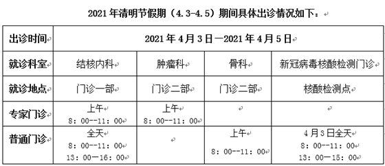北京胸科医院2021年“清明节”假期期间出诊信息
