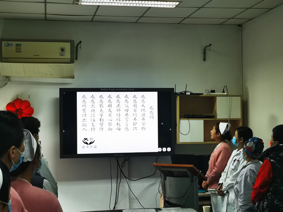 综合科护士长助理郭倩给我们讲了“清明节”的由来,随后,全体人员一起诵读“感恩词”,感谢天地滋养万物,感谢国家培养护佑,感谢父母养育之恩,感谢遇到的人和事,感谢所有付出的人。