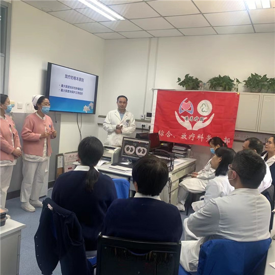 4月14日:由支部书记张旭主任到三病区,以“刀光闪闪的放疗设备”为题,为医生进行讲解,得到三病区医生的好评,为临床医生的治疗选择保驾护航。