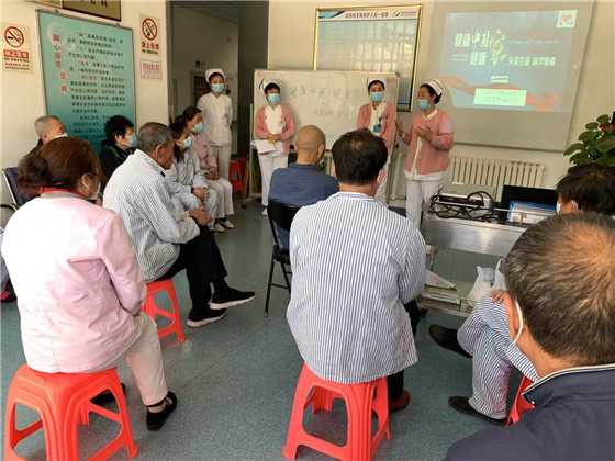 4月15日:放疗科于艳华护士长为三、四病区的患者进行放疗知识讲解,通过讲解,让患者走出了放疗的误区,减轻放疗中的顾虑。