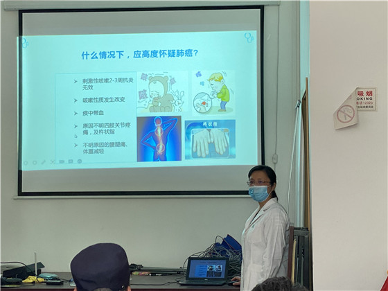 陶主任讲到,为何有些患者年年体检,发现肺癌时仍是晚期,其中有些误区和危险因素一定要注意:第一个误区,很多人认为抽血、拍胸片就万事大吉了,殊不知,胸片能发现的肺癌多数已经是晚期,早已失去了最佳的治疗时期。第二个误区,平时有刺激性咳嗽,他们会一直扛着,觉得没关系,或者认为吃点止咳药就好了,不用去医院检查。第三个误区,原因不明的四肢关节疼痛及腰腿痛,他们认为关节功能退化,不去重视。其实以上都是肺癌的危险因素,如果及时干预,是会早期发现,早期治疗的,会治愈或者延长生命周期。