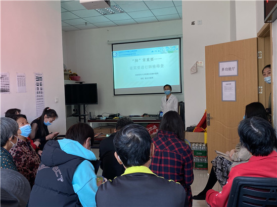 “点亮抗癌之路,助力健康中国”,在全国第27个肿瘤宣传周,北京胸科医院疾控处携手我院肿瘤科、中医科、呼吸科的医护人员,第四次走进社区,为通州区珠江拉维小镇社区里的百姓普及肺癌的早筛、早诊知识。