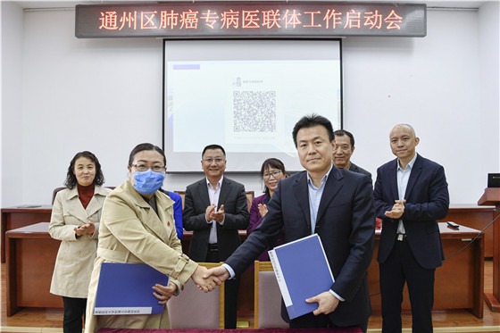 北京胸科医院还将利用医联体平台,对通州区基层医疗卫生机构开展技术培训,按月对医联体内的医护人员进行学术培训,开展到医联体单位查房,会诊服务,同时为社区医生提供进修机会,加强通州区肺癌相关学科建设和肺癌专业相关人才培养,提升基层医生肺癌早筛早诊意识,为通州区打造一支有经验、有能力的基层医疗团队,提高通州区肺癌诊疗的整体水平;医联体还将发挥科普职能,提高通州区居民对肺癌防治知识的掌握,更好的为百姓服务。