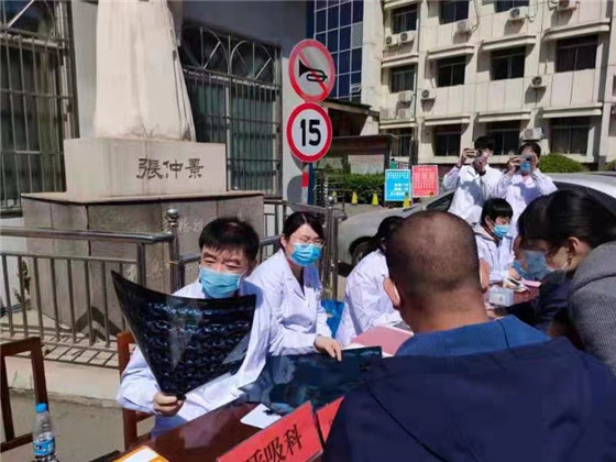 此次活动,我院综合科张同梅主任,放疗科张旭主任,心脏中心张健主任,结核科高孟秋主任,呼吸科叶寰主任组成强大的专家组,就诊咨询的群众络绎不绝。专家们认真接待每一位前来咨询的群众,细致解答疑问,针对不同病症和个体差异提出合理的诊疗建议和治疗方案,还为年轻医护人员讲解常见病、多发病的预防知识和注意事项,几位专家还多次联合会诊为群众解决疑难健康问题。护理团队现场发放宣教材料、检测血压血糖,整个义诊场面火热而有序。