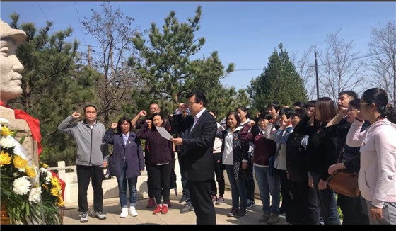 义诊结束后,综合,放疗科党支部和心脏中心,结核二科党支部的党员、团员和群众来到了位于密云县石城乡河北村的白乙化烈士纪念馆,在这里和密云中医医院的党员们一起举行了“缅怀英烈、不忘初心、牢记使命”的主题教育实践活动。参观讲解结束后,全体党员同志们列队来到白乙化烈士石像前齐举右手,在党委委员张健同志的领颂下,重温入党誓词,接受红色教育的洗礼。白乙化的英雄事迹让党员、团员及群众深深触动,要学习白乙化先烈那种“革命是我们的权利,牺牲是我们的义务”的奉献、担当精神;学习那种“健全自己,影响旁人”的高贵品格;学习那种“说干就干,要干就干到底,别人怕干的自己先干,别人不干自己去干,不畏惧,不延迟”的工作作风。正是因为革命先烈的奋力拼搏,无私奉献,才有我们如今欣欣向荣的繁荣景象。我们必须要“不忘初心,牢记使命”牢记这些革命先烈的品质和精神。