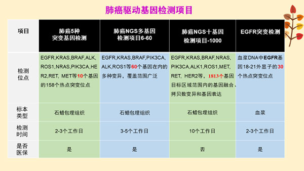 基因检测不仅可以指导肺癌患者靶向用药,也可以辅助早期诊断,同时具有评估预后、辅助检测疾病进展和耐药情况等多重作用。根据肺癌患者的不同需求,我院病理科开展了多项肿瘤相关分子检测项目: