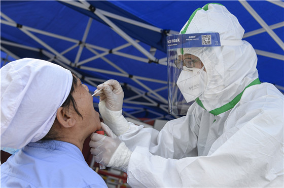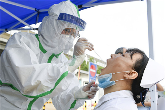 在医院核酸检测采集处已经工作2个月的护师赵欣楠说,平时做核酸标本采集的人也很多,穿着防护服一般连续工作5个小时,最多的一天一个人做了368份标本采样。在结束上午的采样工作后,她也去填了一张申请单,她要体验一下被采集标本的感受。她说:“平时工作的时候会有人在采集前紧张的问我,难受不难受,什么感觉。我只能告诉他怎么配合我会好些,怎样才能准确采集到标本。这次我也要感受一下,这样我就可以告诉他们是什么感受了。”