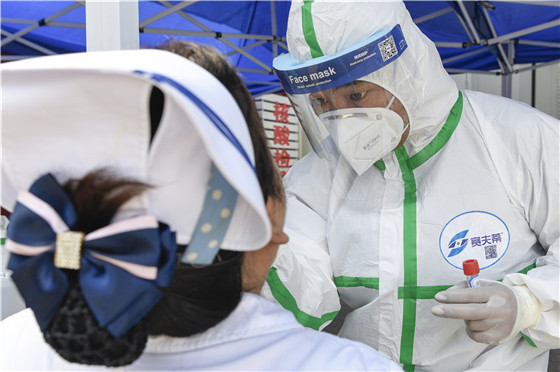 手术室护士长助理李晓轩也是参加过支援小汤山战疫工作的护理人员,脱下防护服后的他,身上的绿色手术服已经全部湿透,他笑着说:“通过这次检测能帮助大家排除疑虑,我觉得自己的付出很值得。”