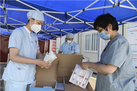 负责为全院工作人员进行咽拭子标本采集的医务人员大部分参加过支援武汉、小汤山、发热门诊战疫工作以及日常咽拭子标本采集工作,具有丰富的临床经验。护理部主任王秀华说:“此次标本采集工作全部由护理人员承担,从人员安排上,我们优先选派经验丰富的护士参与此项工作。最让我感动的是,任务发布后,各科室护士兄弟姐妹积极报名,护士长带头主动承担。除了参加此次检测任务外,我们还有100多人的咽拭子采集后备队伍随时待命,当国家疫情防控需要的时候,我们将义无反顾地冲到最前线。”