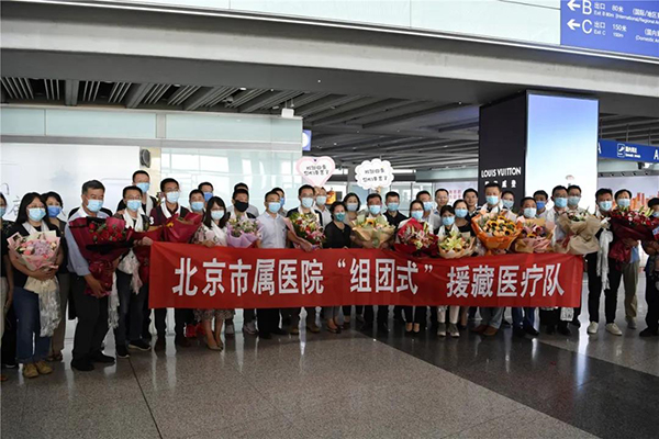 2021年8月9日,北京市第六批“组团式”援藏医疗队圆满完成援助任务,载誉归来!市卫生健康委党委委员、副主任李彦梅,市卫生健康委干部人事处干部刘琳琳,市医院管理中心组织与人力资源管理处副处长朱晓瑞到机场迎接慰问。我所院重症医学科护士长、主任护师王秀军同志作为成员之一随队返京,党委书记潘军华同志带领其所在党支部书记、科室主任,以及党委办公室、护理部、宣传中心等职能处室,与其家人一同到机场欢迎其回家。