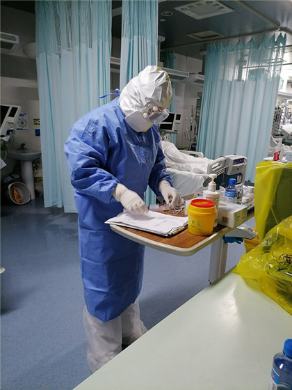 虽然我对重症护理工作非常熟悉,但当面对高压环境下传染病患者的护理时,我还是感到些许惶恐。最初踏入病房为患者清理呼吸道分泌物时,因操作过程中会产生大量气溶胶而恐惧,但当大家来回交替的脚步声、“哒哒哒”的键盘声、“嘀嘀嘀”的输液泵声,充斥双耳时,原有的惶恐消失不见了,取而代之的是那份从容与淡定。