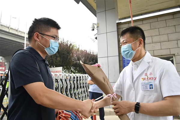 8月19日的天空,丝丝细雨飘落而下,持续了几天的闷热被一扫而空,湿润的空气和青草的味道混合在一起,沁人心脾,让这个医师节的清晨显得格外不同。一大早,首都医科大学附属北京胸科医院党政领导班子手持鲜花,站在医院入口,冒雨等候着每一位胸科医师的到来,用温暖的祝福和衷心的感谢与他们共同迎接第四个“中国医师节”的到来。