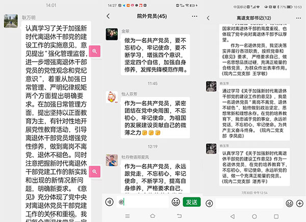 近日,北京市委办公厅下发了《关于加强新时代离退休干部党的建设工作的实施意见》(以下简称《实施意见》),为了更好地贯彻落实《实施意见》精神,北京胸科医院利用微信群在离退休党支部中开展了专题学习活动。