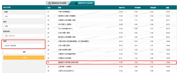 与既往不同的是,本年度特别推出2017-2021年度总科技量值(ASTEM),以更好反映机构的长期稳定的科研实力。在总科技量值(ASTEM)排行榜中,我院结核病学科仍居榜首,传染病学位列第14名,呼吸病学位列第38名,胸外科学位列第86名,这体现了以上学科近五年的科研实力情况。