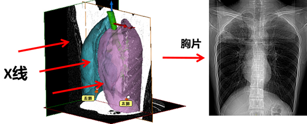 胸片是X线经过人体后在铅板上的投影,因此是二维图像,前后有重叠。当病变较小或位于肺门、心脏附近时是很难发现的。