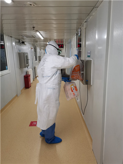 我们带着他们来到房间,向他们介绍房间内每个设备如何使用,如何点餐,如何视频通话,如何上网等等。客人笑着说:“你们真是什么都想到了。”在这里,我们从生活起居上给予他们精心照顾,给他们送来入住后的第一瓶水,递送第一份饭菜,缓解了他们十几个小时旅途的疲惫。“您先洗洗脸,旅途劳顿先休息一下吧。”一句句贴心的叮嘱,我们努力为他们营造家一般的温馨。