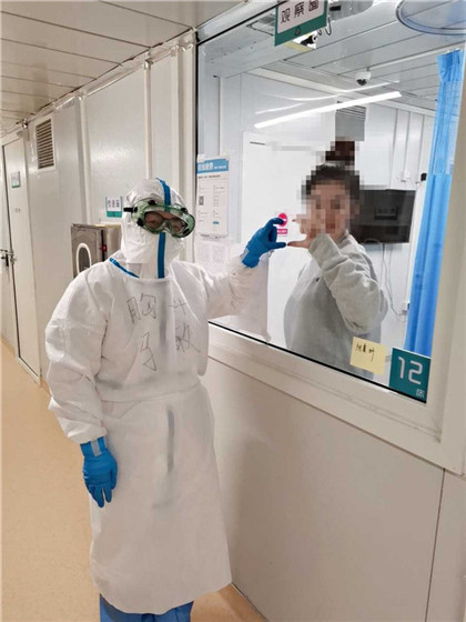 我已经来到北京小汤山定点医院第14天了,回想战疫的号角在北京吹响,北京胸科医院医务团队立即集结,先后多次派出医疗队员支援小汤山,我很幸运成为其中的一员,同我的战友们一起踏上小汤山这片战役的热土。在这里,胸科护理团队听从北京小汤山定点医院统一安排,分配在多个科室进行境外来(返)京有症状需筛查人员的筛查、护理工作,同时我接受任命担任3-8新建病区护士长,我和我的护理团队共同奋战在抗击疫情的一线。