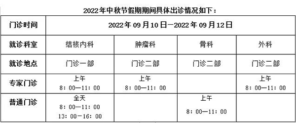 北京胸科医院2022年“中秋节”假期期间出诊信息