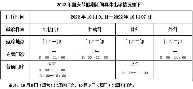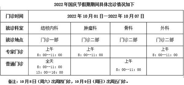 北京胸科医院2022年“国庆节”假期期间出诊信息