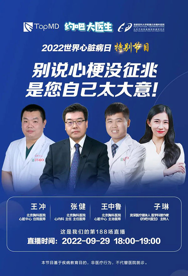 《约吧大医生》第188场患教直播即将开启!本场直播同时也是TopMD《约吧大医生》2022世界心脏病日特别节目。